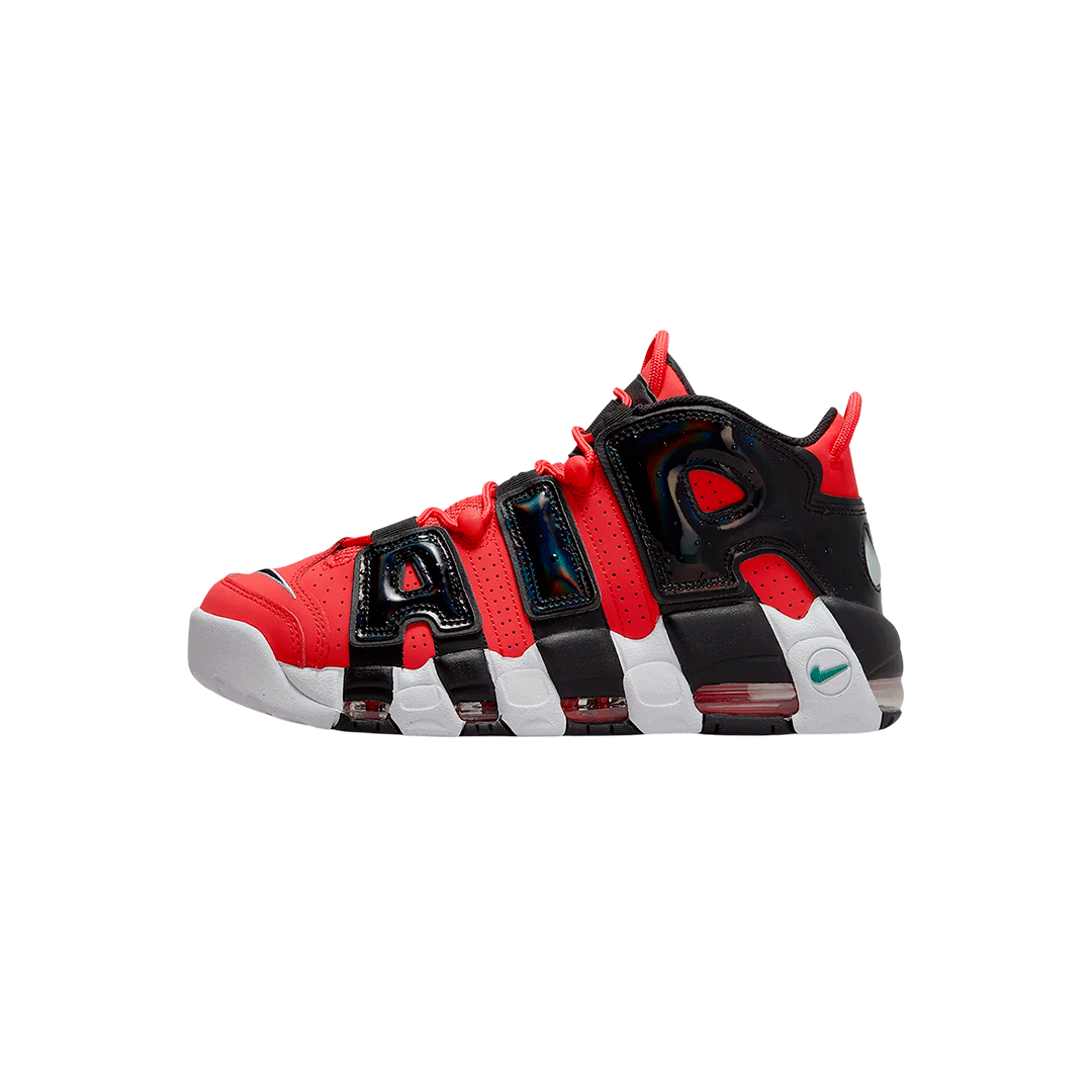 A diferencia de las Dunk High que las acompañan , la última versión de las Air More Uptempo se entrega a una vibrante combinación de colores rojo y negro en lugar de lucir toques de azul y gris. La mayor parte de la parte superior cubierta de nobuk está revestida en el tono más brillante, mientras que las icónicas letras "AIR" en los perfiles presumen de un contraste oscuro y marcado y un acabado algo iridiscente. La marca en la parte posterior introduce un maquillaje completamente blanco, que complementa bien gran parte de la entresuela; logotipos adicionales en la sección trasera medial de la entresuela optan por un tono verde dispar, mientras que las contrapartes agrandadas en la suela exterior toman prestado el estilo de color rubí de la parte superior. Por último, el llamado "I got next" se realiza a través de las plantillas de las zapatillas y está acompañado por una imagen de un aro de baloncesto