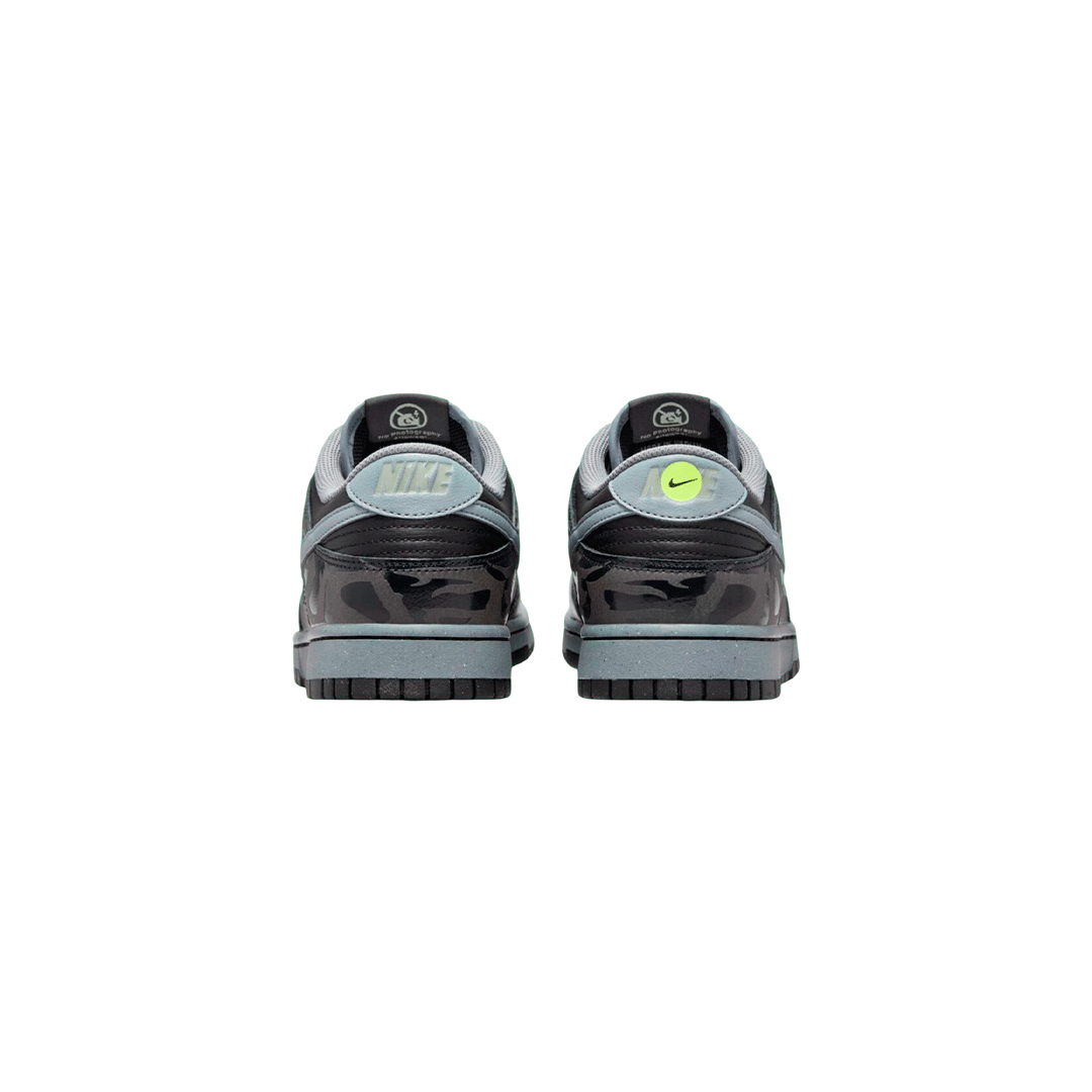 En el interior, la etiqueta en la lengüeta "No se permite la fotografía" hace un sutil guiño a la exclusividad de la escena club underground. Detalles reflectantes inspirados en diseños de tatuajes envuelven el talón, evocando el nombre de la zapatilla con una expresión artística esotérica. Detalles en gris frío, plantillas personalizadas y adornos de baloncesto completan el diseño. Tatuajes, piercings, vida nocturna underground llena de coraje: Berlín, estas Dunk son para ti.