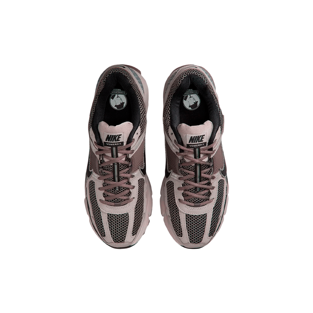 Dada la constante colaboración con AMM, la mayoría de nuestros lectores y la comunidad de zapatillas en general deberían estar familiarizados con las paletas tonales oscuras que la marca utiliza. La fuerte influencia del tono rosa intenso que da título a este look se asemeja mucho a esos maquillajes, siendo las Air Jordan 4 "Violet Ore" y los tonos acentuados de las Air Jordan 5 "Dusk" las que más se asemejan. Alejándose de esa línea de pensamiento, estas Vomero 5 representan un giro radical respecto a las ediciones principales, alejándose de los looks vibrantes o con un toque de Y2K a los que estamos acostumbrados.